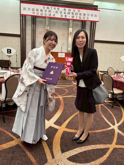 振り返ると、2年間という日々は本当にあっという間で、辛いことや悔しいこと、そして嬉しいことなど、さまざまな思い出がよみがえります。しかし、どんな時も共にNPを目指して駆け抜けた仲間がそばにおり、常に支え、導いてくださった指導教員の先生方、そして温かく応援してくれた家族や職場の同僚の存在があったからこそ、無事にこの日を迎えることができました。この場をお借りして、これまで支えてくださったすべての皆さまに心より感謝申し上げます。そして、これから私たちはそれぞれの道へと歩み出します。ここはゴールではなく、新たなスタートです。入学した日の初心を胸に、自分が思い描く理想のNP像に向かって、一歩一歩、誠実に歩み続けていきたいと思います。